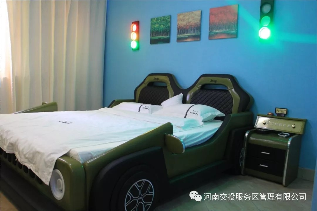 來源: 本站 發布時間: 2019-08-22為認真貫徹落實上級“三大行動”、“百站百區提質”活動安排,為司乘提供更好的住宿體驗,銅山湖服務區以“我愛我家、建設美麗家園”活動為推動力,積極對客房進行主題升級改造。改造完成后的銅山湖服務區主題客房,內飾裝修由汽車主題元素打造。汽車造型床、汽車型桌子、紅綠…