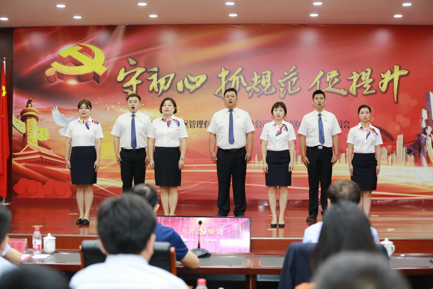 黨課活動開始前,與會全體黨員在基層黨員《我宣誓》的歌聲中,重溫入黨誓詞,堅定入黨初心;在經典誦讀《可愛的中國》中,感受中國天翻地覆的巨變,堅定為中華民族偉大復興努力奮斗的信心;在黨的創新理論下基層宣講中,堅定為集團高質量發展不懈努力的決心。
