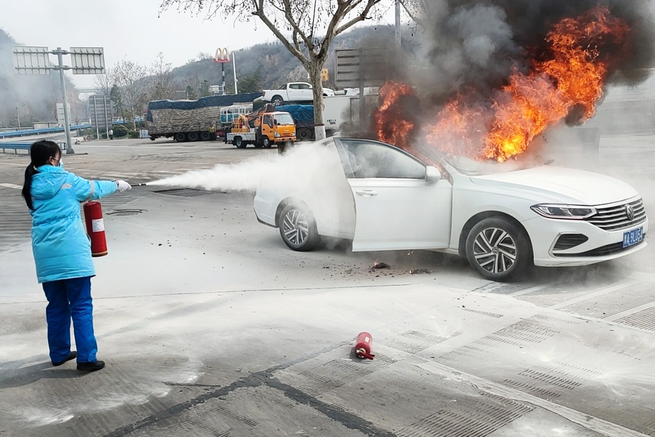 小轎車(chē)自燃 鞏義服務(wù)區(qū)、加油站緊急滅火保安全
